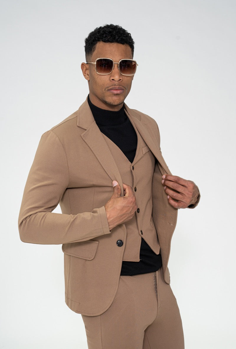 De 'Salerno 3-delige suit' is onze bestseller! Dit premium pak bestaat uit een pantalon, blazer en gilet, die samen zorgen voor een verfijnde en elegante uitstraling. Dankzij de 4-way stretchstof zorgt het voor optimale bewegingsvrijheid. Het gilet heeft een verstelbare achterkant, wat zorgt voor een slanker silhouet en een ideale pasvorm. De blazer heeft geen zakken, maar de pantalon is wel voorzien van echte broekzakken. Het pak is vervaardigd uit een luxe mix van 65% rayon en 30% nylon, wat zorgt voor een premium uitstraling en ademend vermogen. Voor een lichtere optie is er de 'Salerno 2-delige suit'zonder gilet. Maak je outfit compleet met onze 'Veneto' of 'Mendoza' instappers, perfect voor bruiloften, zakelijke meetings of speciale gelegenheden!