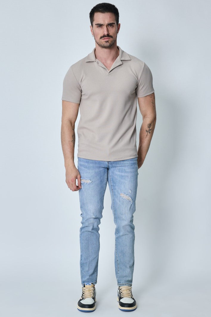 'The Houston V neck polo' is de ideale toevoeging aan je garderobe. Met een elegante V-hals en een luchtige, maar toch stijlvolle ribbelstof, straalt deze polo verfijning uit. Gemaakt van een hoogwaardige mix van 95% polyester en 5% elastaan, biedt het materiaal een perfecte pasvorm en optimaal draagcomfort. The V neck polo laat zich moeiteloos combineren met onze Paris pantalons en Mendoza instappers voor een complete, stijlvolle look. Haal jouw ideale must-have in huis en maak elke outfit helemaal af!