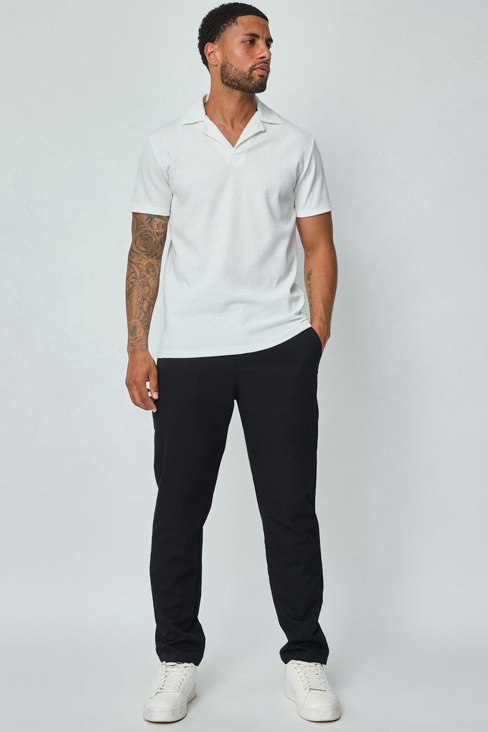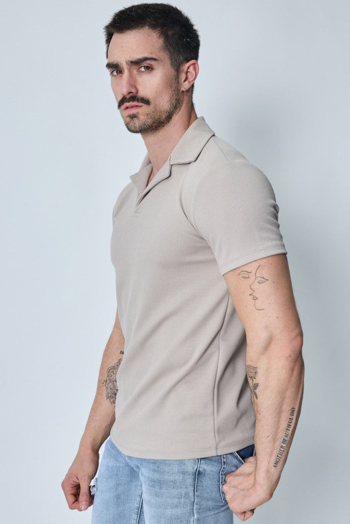 - Stijlvolle V-hals & ribbelstof: De verfijnde V-hals in combinatie met een chique ribbelstructuur geeft de polo een moderne uitstraling.