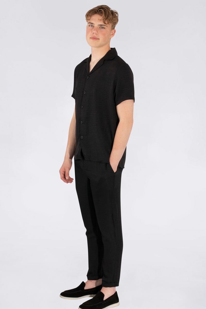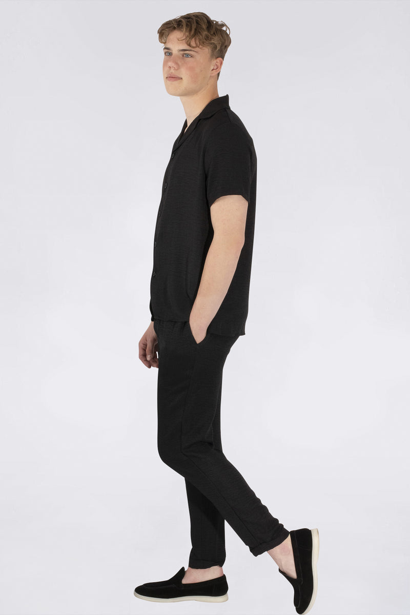 'De Chevran linnen zomerset' is een luchtige en comfortabele zomerset, perfect voor de warme zomerdagen. Het setje bestaat uit een los vallend blousje met een V-hals en knoopsluiting. Het bijpassende broekje heeft een elastische tailleband die je kunt verstellen met twee touwtjes. De ideale must have voor in de zomer! Het is gemakkelijk te combineren met 'de Chrevran Blouse', afhankelijk van de gelegenheid.